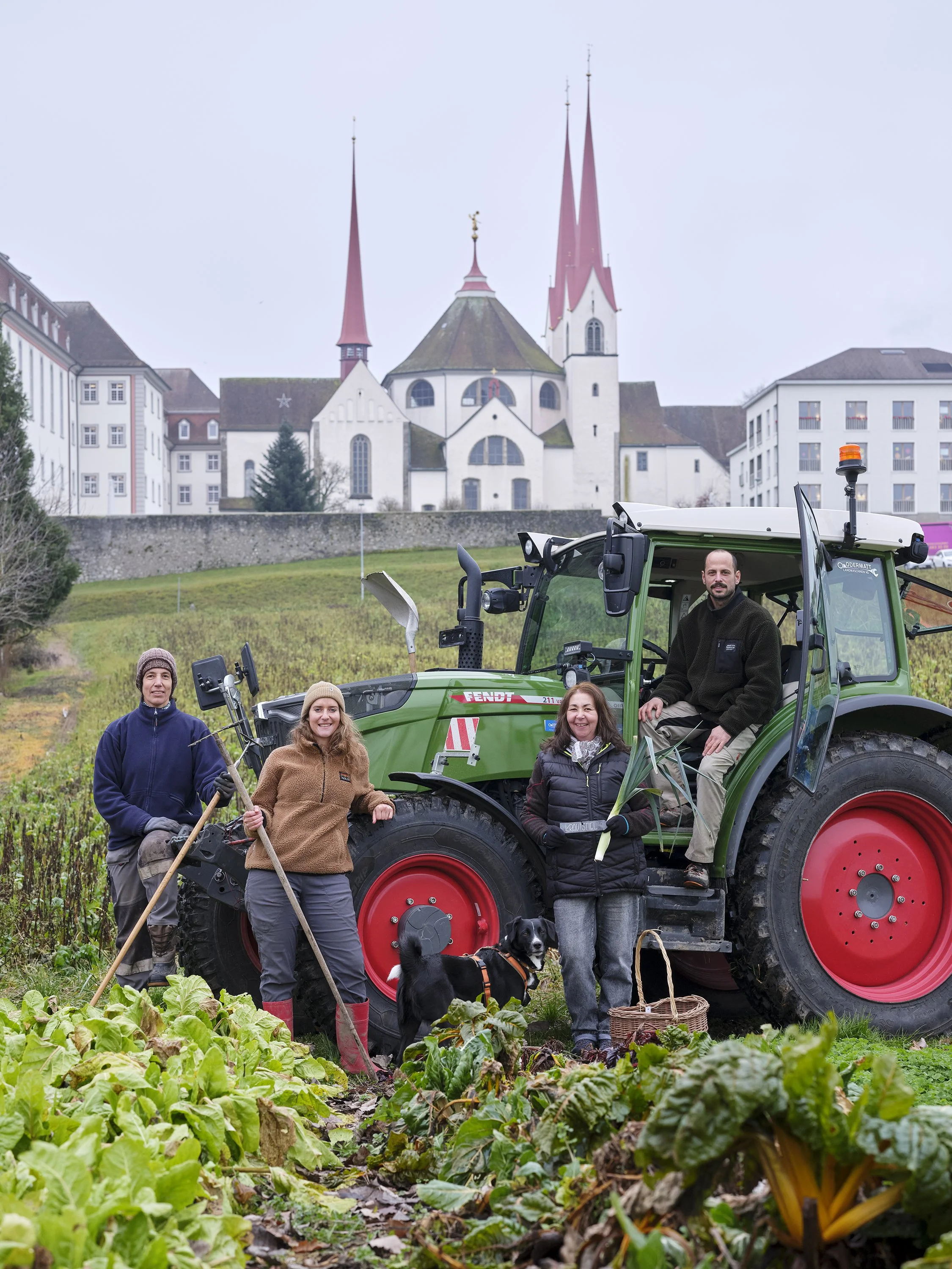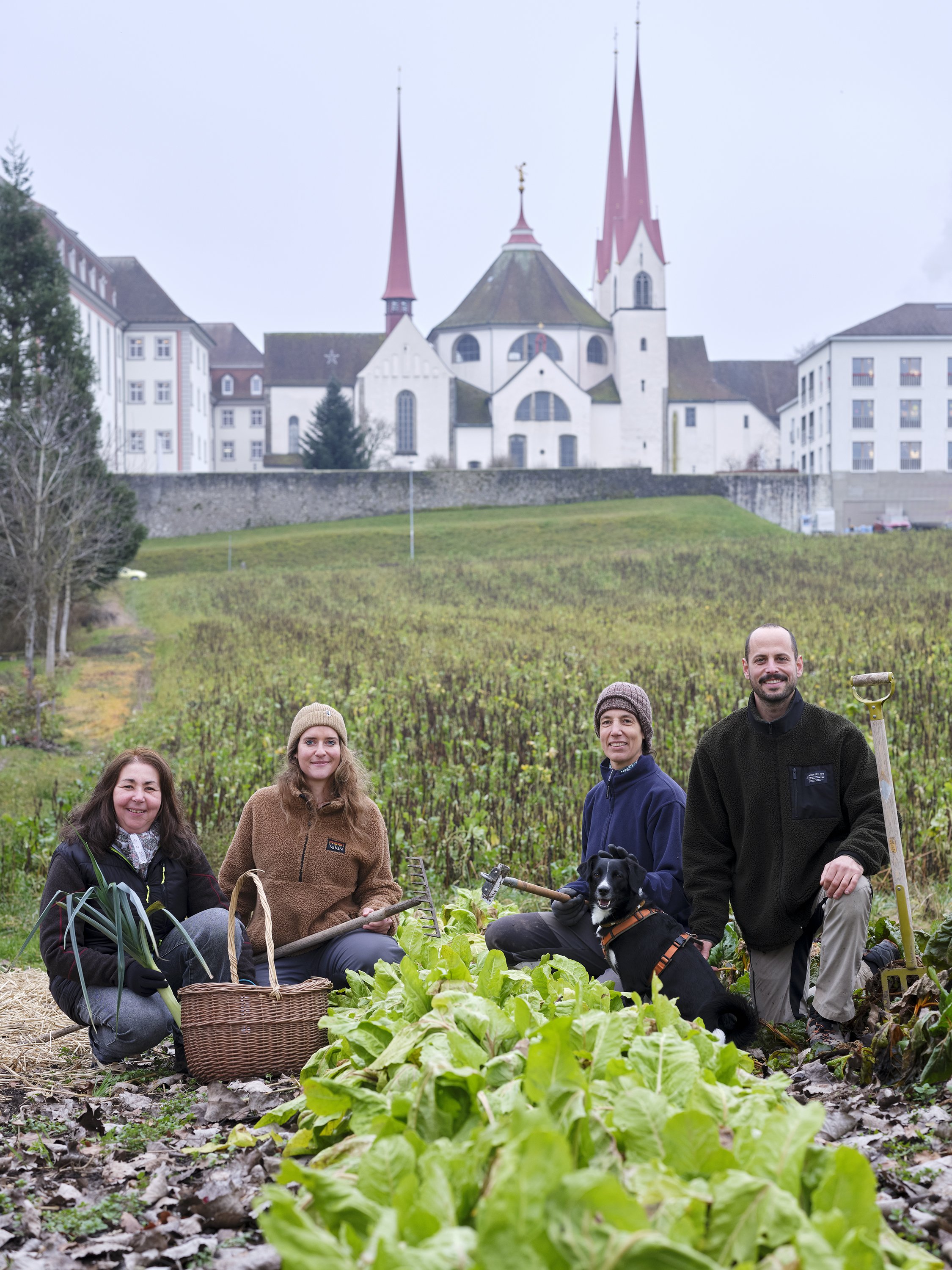 Auf dem Klosterhof neben der geschichtsträchtigen Scheune, eingebettet vom Bauernhaus, Nussbäumen und dem Hühnerhaus. Der reichhaltige Gemüsgarten wird biologisch bewirtschaftet und gepflegt von Valérie und Jules Frey, welche den Hof in fünfter Generation mit viel Leidenschaft bewirtschaften.